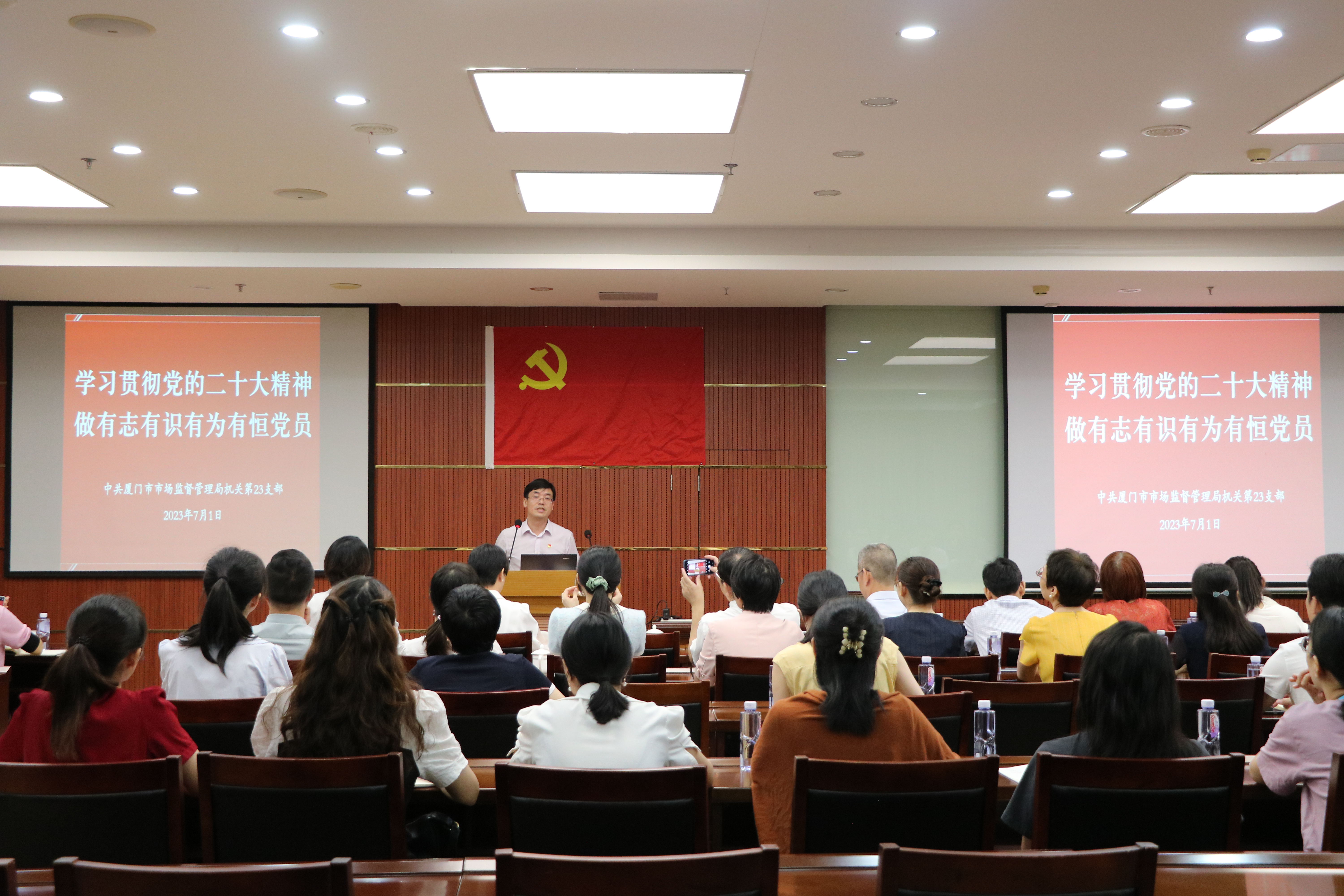 在這次聯(lián)建共建中,中共廈門市市場監(jiān)督管理局機關第二十三支部何清杭書記帶來了一堂《學習貫徹黨的二十大精神,做有志有識有為有恒黨員》的主題黨課。授課前,何書記作為領誓員,脫稿帶領大家一起重溫入黨誓詞,全體黨員面對鮮紅的黨旗,莊嚴地舉起右拳,鏗鏘有力、擲地有聲地宣讀誓詞。