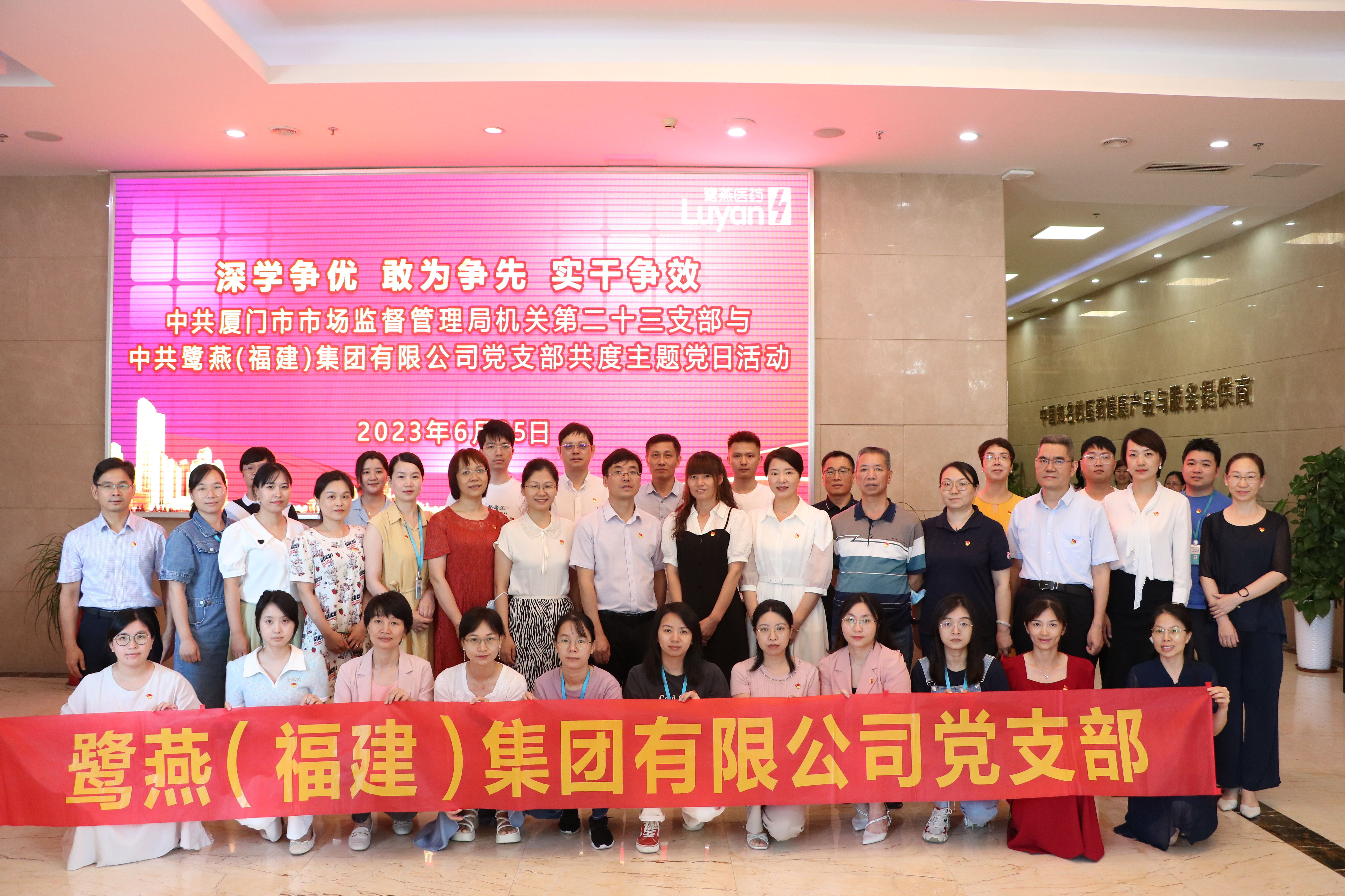 為深入學習貫徹黨的二十大精神,慶祝中國共產(chǎn)黨成立102周年,充分發(fā)揮黨建工作對企業(yè)經(jīng)營管理的引領力,鷺燕(福建)集團有限公司黨支部積極主動對接監(jiān)管部門基層黨支部,與中共廈門市市場監(jiān)督管理局機關第二十三支部共同開展主題黨日活動。2023 年6月25日, 活動在鷺燕總部大廈如期舉行,中共廈門市市場監(jiān)督管理局機關第二十三支部全體黨員、鷺燕(福建)集團有限公司黨支部黨員以及鷺燕集團廈門區(qū)域部分成員公司總經(jīng)理、質管干部參加了活動。
