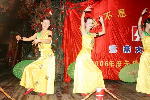 下午4:00整,在《好日子》歡快的歌舞中,表彰聯(lián)歡會正式拉開了序幕。會上共頒發(fā)了九個獎項,分別是最佳員工獎6人,最佳藥師獎2人,最佳新人獎、最佳參與獎、最佳貢獻獎各1人,最佳店長獎3人,最佳門店獎2個,還有兩個特殊的獎項:一是半年度毛利考核指標完成相對值、絕對值各前3名的門店,二是2000年8月前入職的老員工獎。頒獎過程中還穿插了員工們自編、自導(dǎo)、自演的小節(jié)目。他們用優(yōu)美的舞姿、甜美的歌聲、俏皮搞笑的小品為杰出的先進代表們喝彩、祝福,現(xiàn)場氣氛非?;钴S,高潮迭起,一張張如花的笑靨遨游在一片歡樂的海洋……最后,在《感恩的心》的優(yōu)美的旋律和熱烈的掌聲中,活動暫告一個段落。